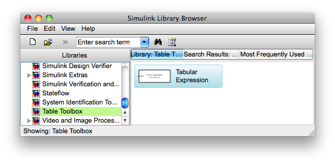 To create a new table block locate the Tabular Expression block in the simulink library.