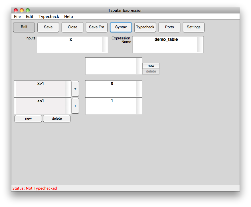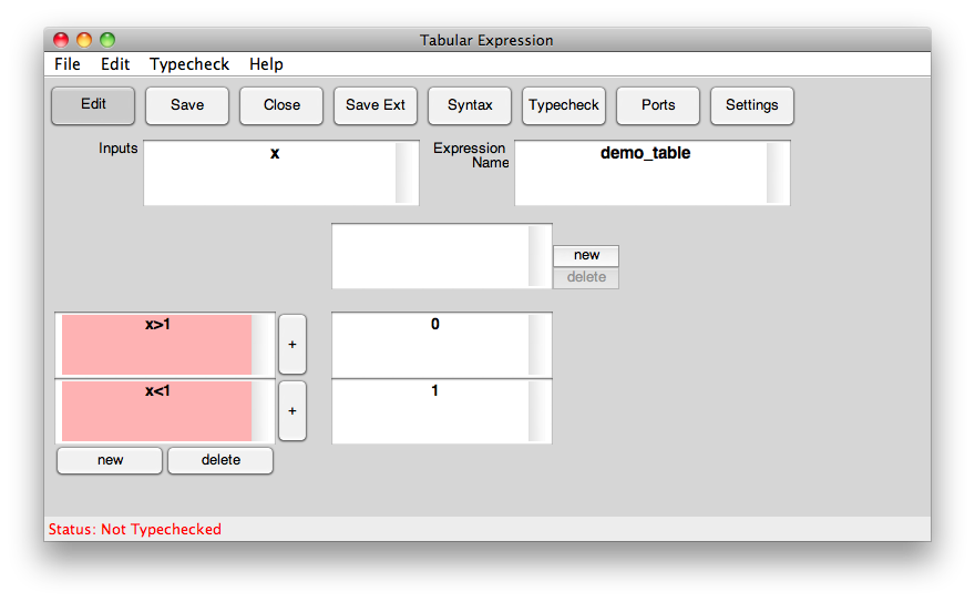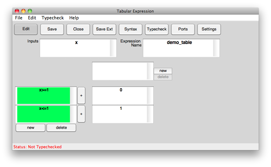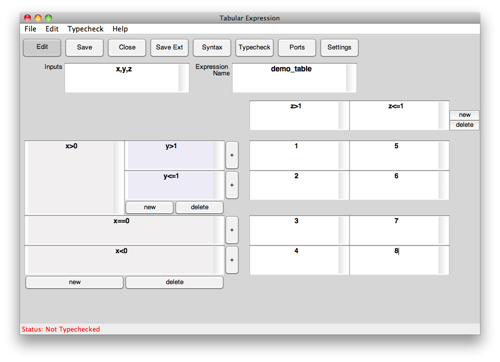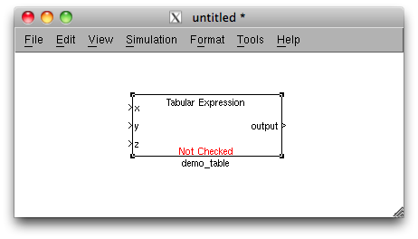 This product allows users to interactively design a tabular expression. The resusulting function can be saved as a Simulink block or to a Matlab m-file. Tabular Expressions can be proved to be disjoint and complete using the PVS theorem prover. This allows users to ensure that the table they are designing has covered all possible inputs and is deterministic.
