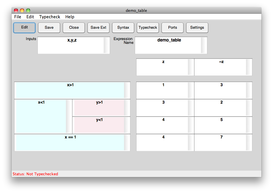 The Table Tool allows users to graphically layout a tabular expression, for which conditions and outputs can be specified using the embedded Matlab subset of the Matlab language.